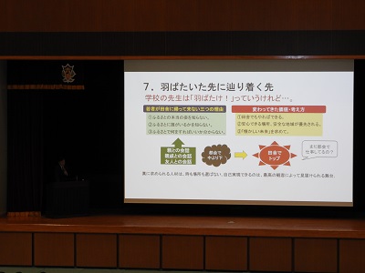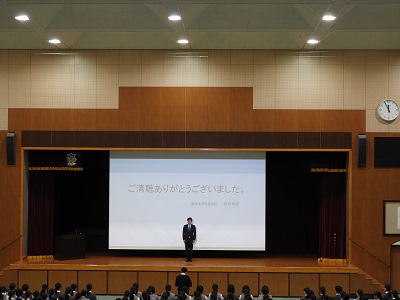 生徒たちには今回の講演で学んだことを糧にして、今後の進路選択に役立てて欲しいと思います。黒田先生、ありがとうございました。