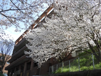 新しい1年がはじまりました。学内の桜が満開です。