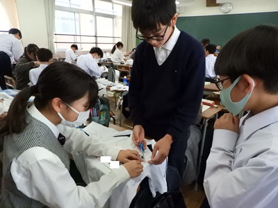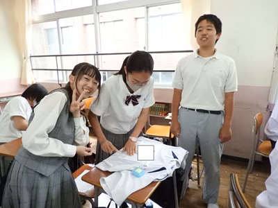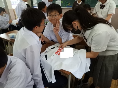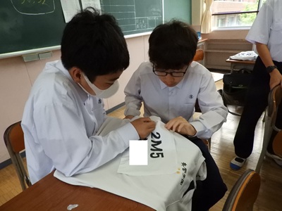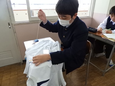 体育大会を明日に控え、着々と準備が進んでいます。中学3年生から高校3年生は体育大会の設営作業や係の仕事を、中学1年生・2年生は自分のゼッケンを縫いました。慣れないお裁縫に四苦八苦しながらも表情はとても真剣でした。
