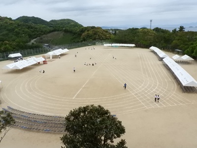 明日の体育大会は、雨天が予想されるためプログラムを一部変更して実施されます。ご来場の皆様、お気をつけてお越しください。